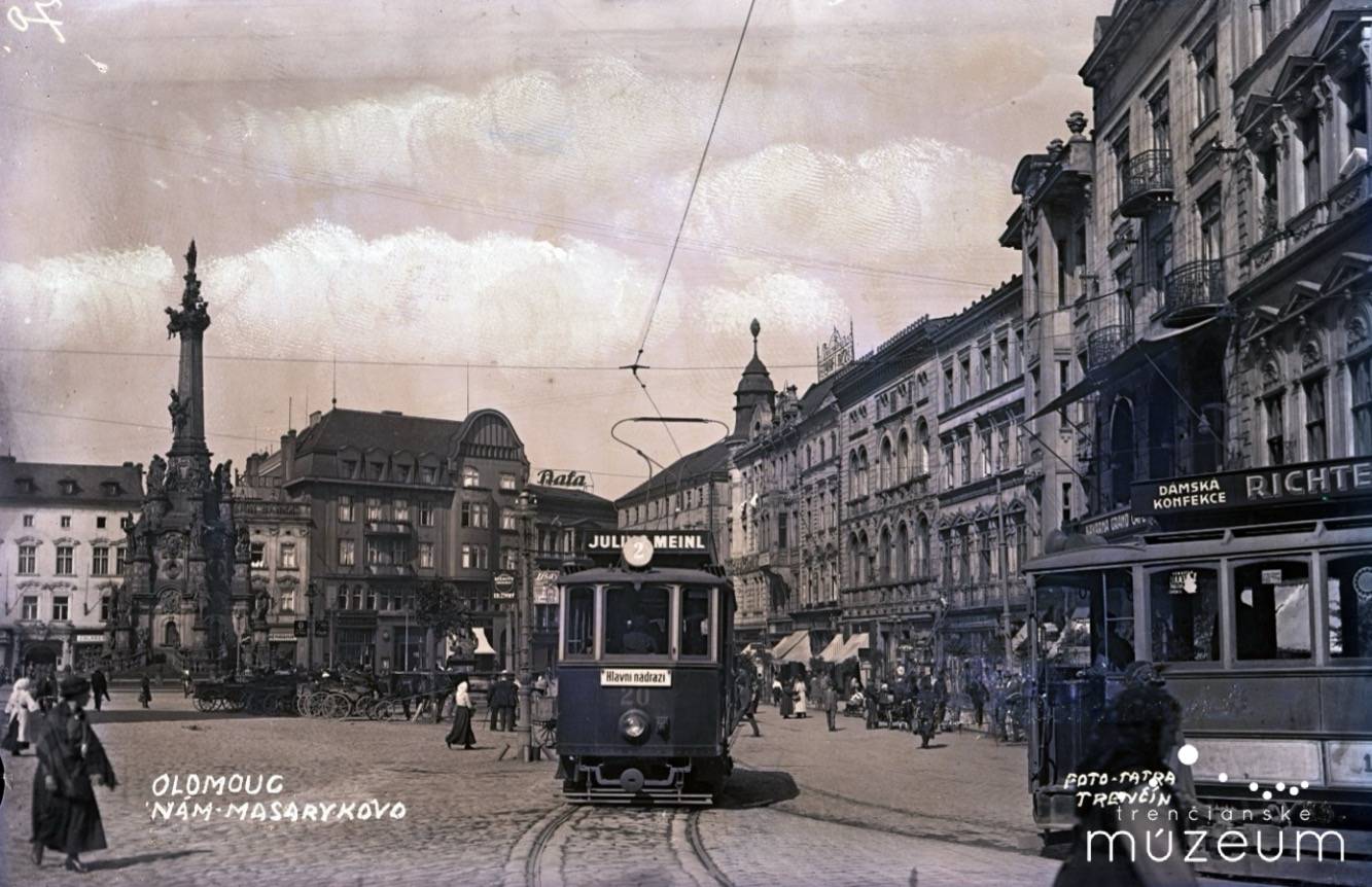 Sklenená fotografická platňa – Olomouc, pohľad na Masarykovo námestie (dnešné Horné námestie), foto: Mária Holoubková,