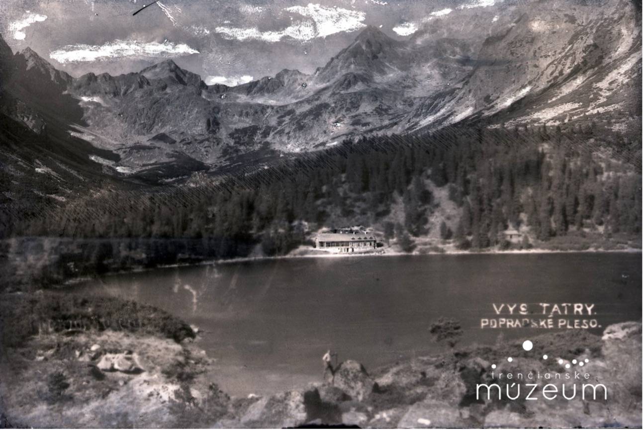 Sklenená fotografická platňa – Popradské Pleso vo Vysokých Tatrách, foto: Mária Holoubková, 20. roky 20. storočia