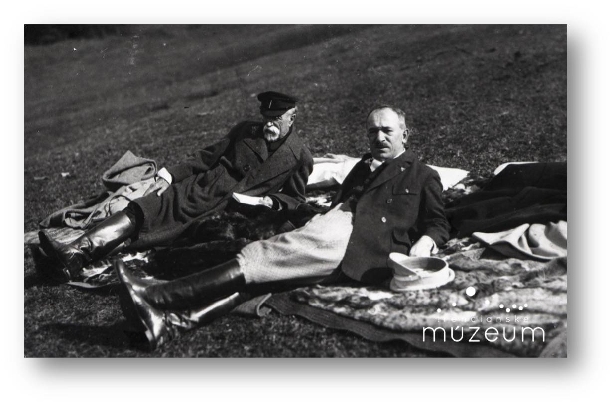 Negatív – prezident T. G. Masaryk s ministrom E. Benešom, odpočinok v Topoľčiankach, foto: Mária Holoubková, rok 1928