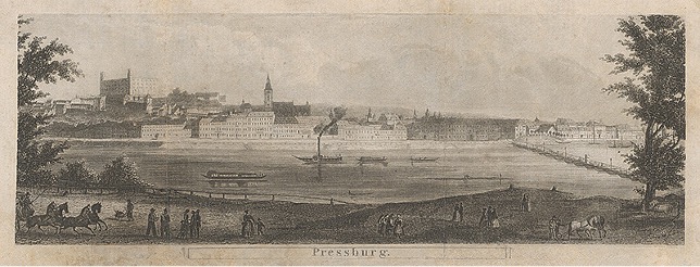 Veduta Bratislavy z obdobia 1850-1867. Franz Hablitschek, Pressburg. Galéria mesta Bratislavy.