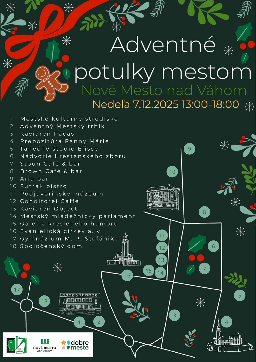 Návštevníci ulíc Nového Mesta nad Váhom tak môžu dňa 7.12.2025 v meste stráviť predvianočný deň plný sviatočnej atmosféry, pričom jednou zo zástaviek bude práve Podjavorinské múzeum.